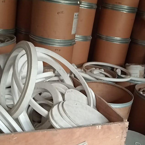 Of pure and virgin PTFE. Colour; white and classified