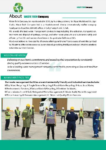 was founded in 2015, by founding partners, Fryad Khalid and Jiger Khalid. Waste Tech Consulting, Ltd. is a Kurdish-owned, diverse internationally staffed company headquarter based in Erbil with offices in Sulaymaniyah and Duhok.