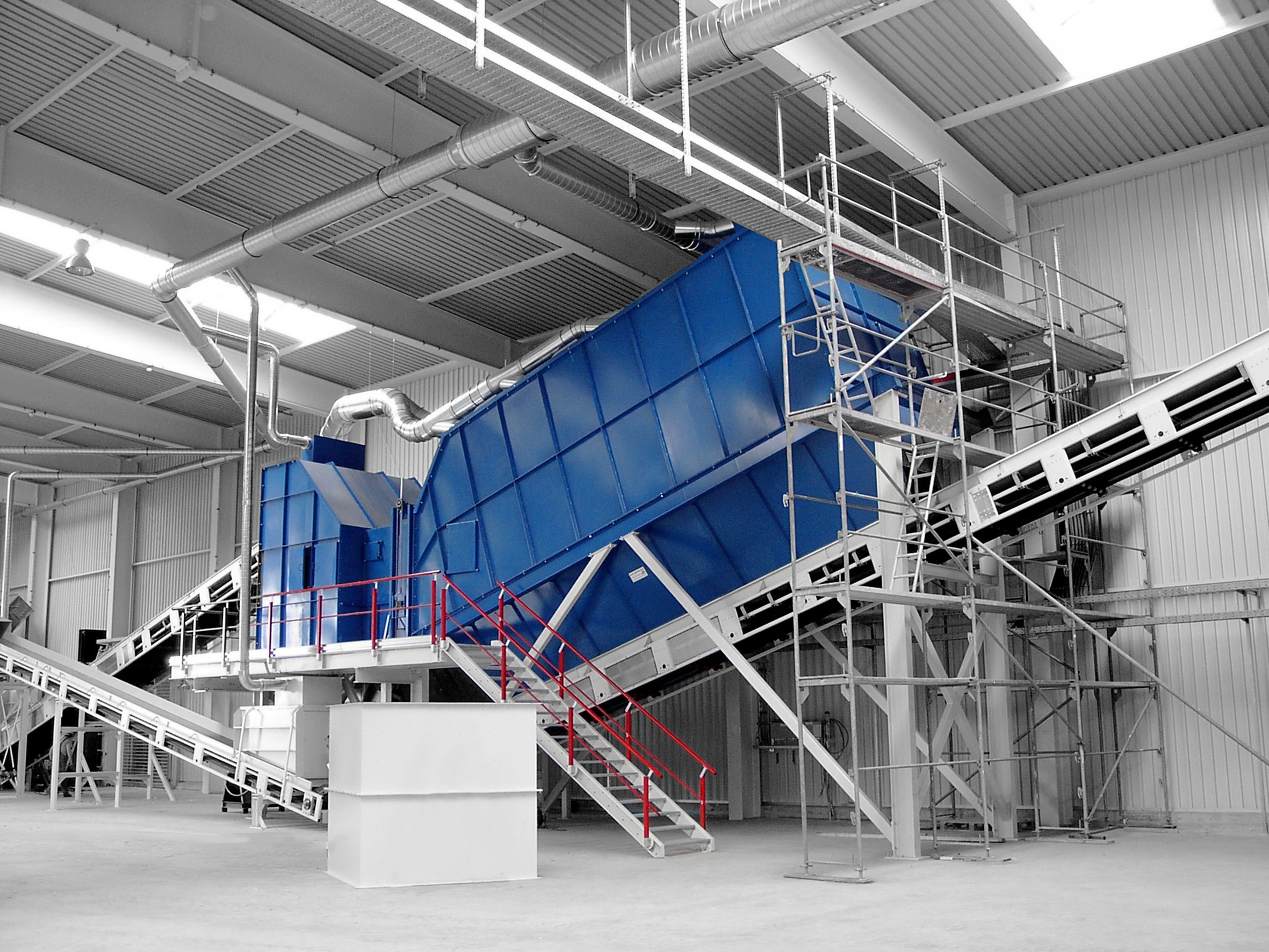 NM Heilig often manufactures air separators in combination with complete (pre-)sorting installations, particularly for light, airy bulk items in bulk handling and recycling facilities for household waste, paper, cardboard, and plastics.