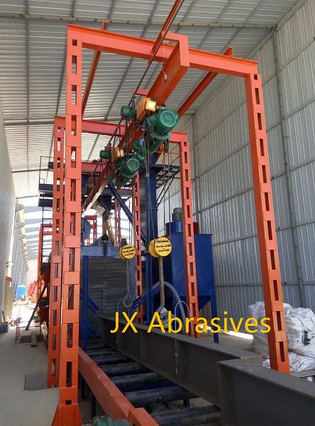Hook Overhead Conveyor Shot Blasting Machine Supplier JX Offers Overhead Conveyor Shot Blasting Machine with Hook, for Casts, Welded Constructions.