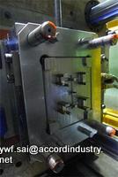 This mould is a small size soft tool made by Shenzhen Accord Industry Limited which covers a wide range of service including mold designing, manufacturing and injection molding. The core steel and cavity steel of the mold are 738 H, while the shot life is 10 K times. The shot weight is 8.19 g and the circle time is 20 s. The product above is transparent and made by PC, which has a cosmetic requirement of texture on top surface.