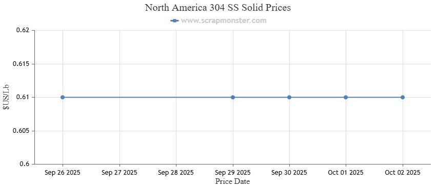 Durante la semana que finalizó el 2 de octubre de 2025, los precios del acero inoxidable 304 sólido se mantuvieron estables en 0,61 dólares por libra.
