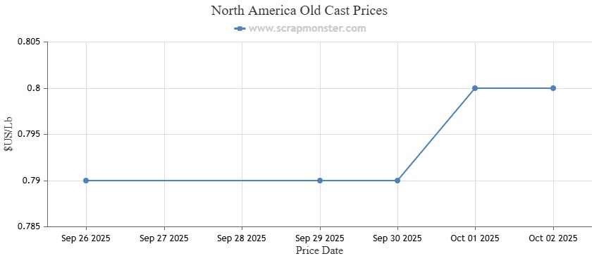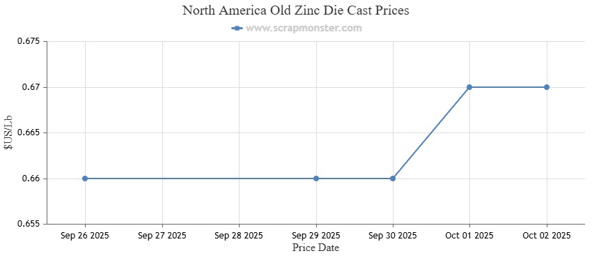 Durante la semana que finalizó el 2 de octubre de 2025, el precio de la chatarra de plomo, incluidas las baterías de automóvil usadas, se mantuvo sin cambios. Los precios del zinc fundido nuevo registraron un aumento del 1,27 % con respecto al precio de la semana anterior, que era de 0,79 dólares por libra. Además, los precios del zinc fundido viejo también subieron un 1,52 % con respecto a la semana anterior.