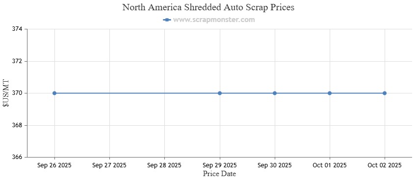 Según el índice ScrapMonster, los precios del HMS n.º 1 se mantuvieron estables en 320 $ por tonelada métrica durante toda la semana. El precio semanal de la chatarra triturada de automóviles fue de 370 $ por tonelada métrica, igual que la semana anterior. A lo largo de la semana, el precio del HMS 80/20 se mantuvo constante en 265 $ por tonelada métrica. Además, las tarifas del Busheling n.º 1 en el índice no cambiaron.