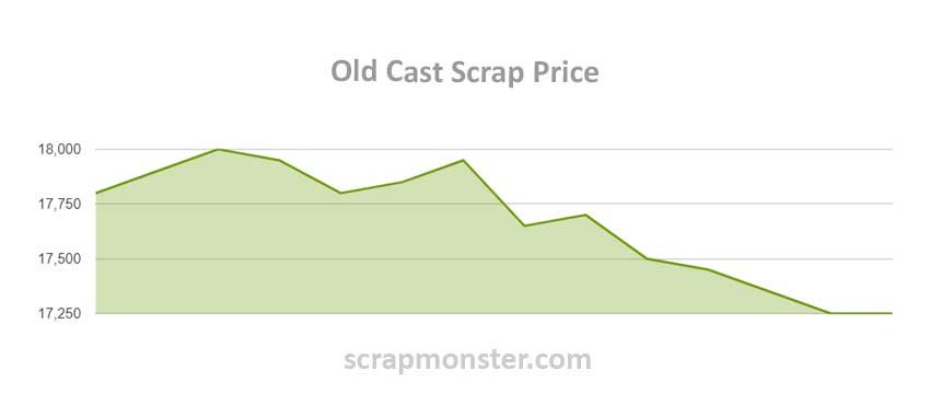 Old Cast and Old Sheet scrap saw their prices prices decline by CNY 250 per MT during the week.