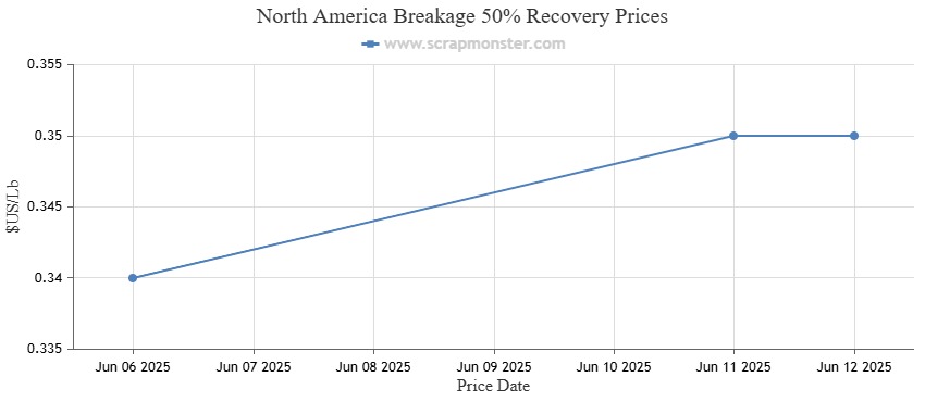 The prices of Breakage 50% Recovery on the Index closed at $0.36 per pound, up $0.01 per pound. The commodity saw an increase of 2.86% in price week over week.