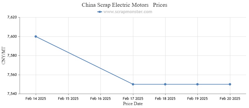 Sealed Units and Scrap Electric Motors recorded the largest decline during the previous week. The prices of Sealed Units were down by 0.67%. The prices of the commodity closed at CNY 7400 per MT. Scrap Electric Motors registered week-on-week decline by 0.66%, to close at CNY 7,550 per MT respectively on the Index.