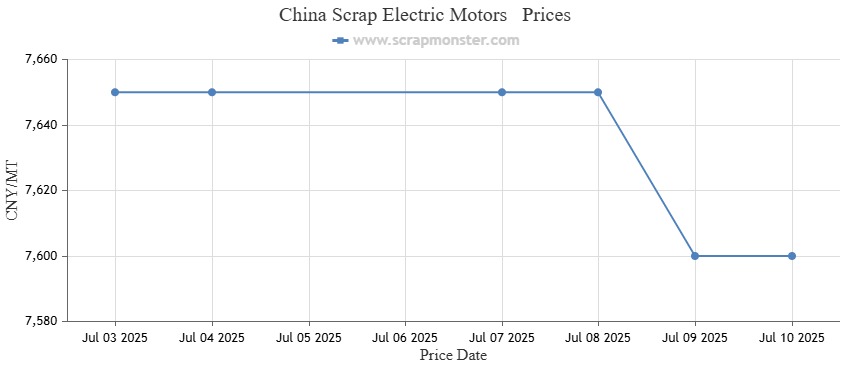 The least week-on-week increase of 0.28% was witnessed in Scrap Electric Motors. The weekly price chart of Scrap Electric Motors for the week ended July 10, 2025 is provided below: