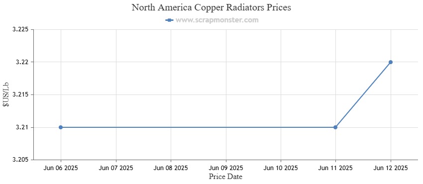 The largest increase in prices over the prior week was witnessed in Copper Radiators, whose prices edged higher from $3.18 per Lb to $3.19 per Lb.