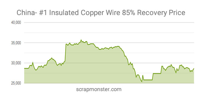 The #1 Insulated Copper Wire 85% Recovery jumped higher from CNY 29,850 per MT to CNY 30,250 per MT each.