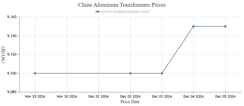 Aluminum Transformers recorded biggest jump in prices. The prices of the commodity edged higher by 0.55% during the week, rising from CNY 9,100 per MT to CNY 9,150 per MT over the week. The weekly price fluctuation in Aluminum Transformers is seen in the chart below: