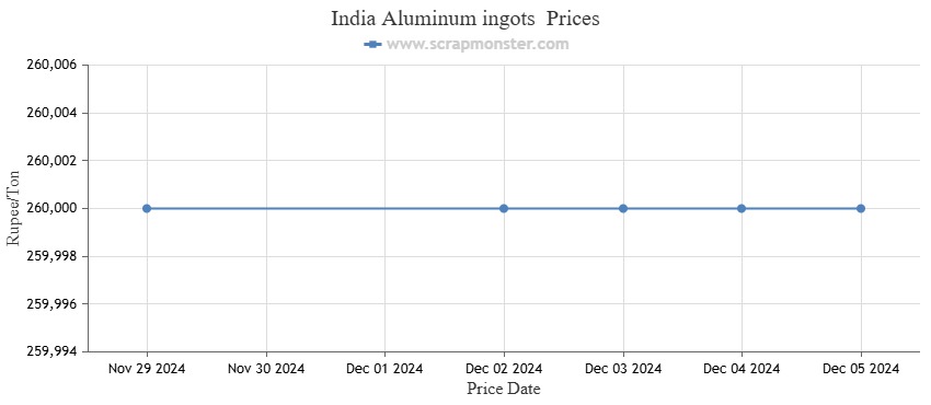 The Aluminum ingots prices witnessed no change from the prior week’s prices. The weekly price chart of Aluminum ingots is provided below: