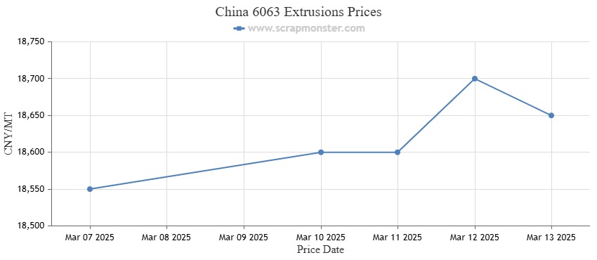 SEATTLE (Scrap Monster): The weekly trend in aluminium scrap prices across worldwide aluminum scrap metal markets for the past one-week period (March 7 to March 13, 2025) on the Scrap Monster Price Index are provided below: