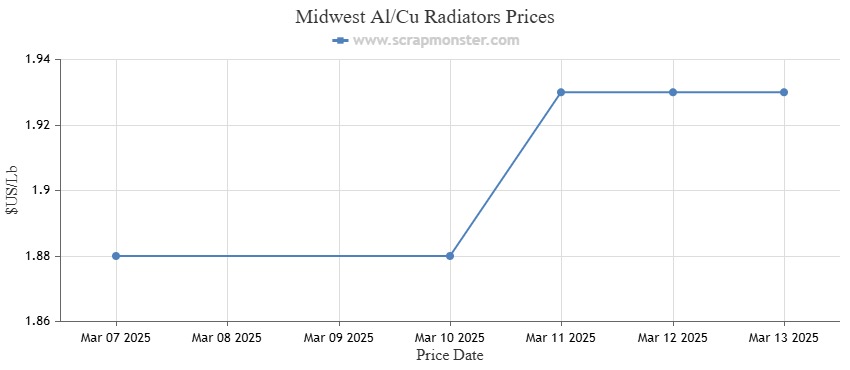Al/Cu Radiators prices increased from $1.92 per Lb at the beginning of the week to close at $1.97 per Lb.