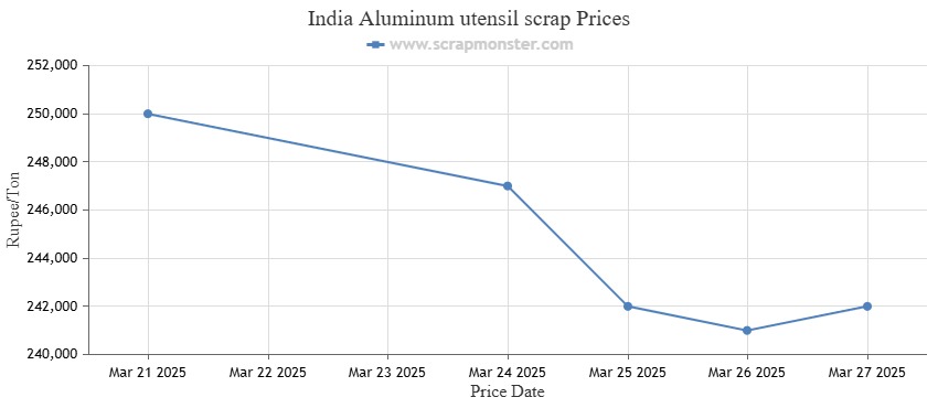 The prices of scrap aluminum utensils saw nominal decline during the week ending on March 27, 2025.