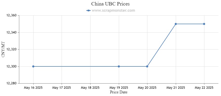 The prices of all aluminium scrap categories (Aluminum Cuttings, Mixed Aluminum Turnings, Old Cast and UBC) witnessed no change during the week.