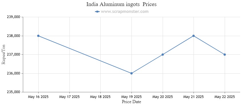 The Aluminum ingots prices also recorded week-on-week decline of INR 1,000 per Ton during the previous week. The weekly price chart of Aluminum ingots scrap is provided below: