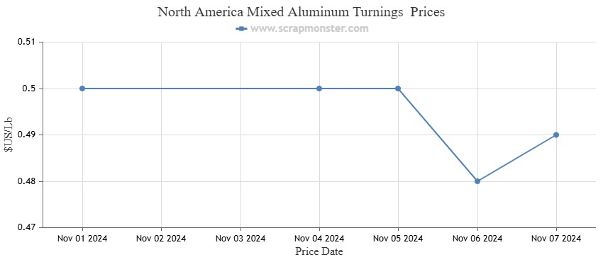 The following chart shows the week-over-week price fluctuation for Mixed Aluminum Turnings: