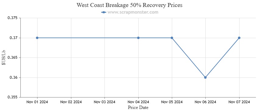 The chart given below provides the weekly price variation in Breakage 50% Recovery during the week ending November 7, 2024.