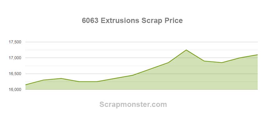 The weekly price chart of 6063 Extrusions scrap is given below.