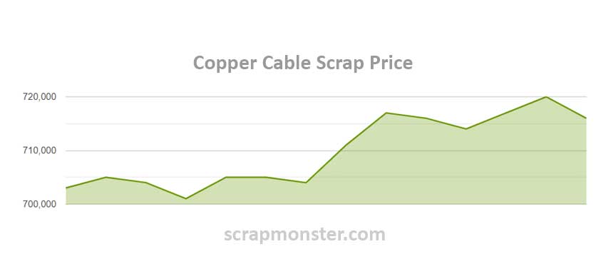 The copper cable scrap prices held steady at INR 716,000 per Ton over the week. The weekly chart depicting the price movement in the commodity is provided below: