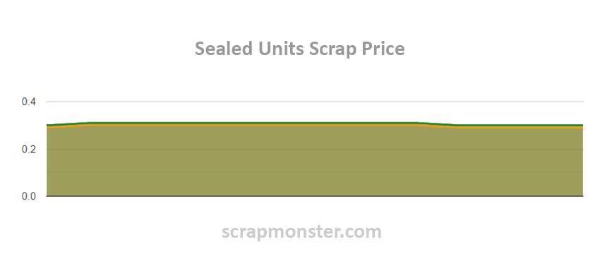 Sealed Units prices were down by 3.23% over the week, falling from $0.31 per Lb to $0.30 per Lb.