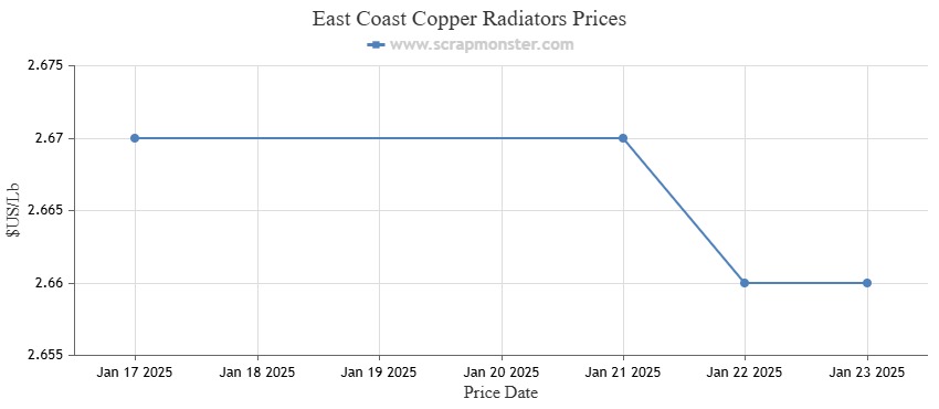 The #1 Copper Bare Bright prices were down from $4.10 per Lb to $4.06 per Lb during the course of the week. Also, Copper Radiators scrap fell by 0.38% during the week ended January 23, 2025.