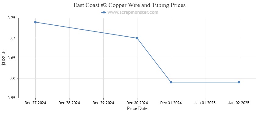 The below chart displays the variation in prices of #2 Copper Wire and Tubing over the previous week: