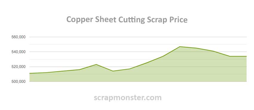 The copper sheet cutting scrap prices were down by INR 13,000 per ton over the previous week to close at INR 534,000 per ton on 11th July, 2024 on the Scrap Monster Index. The weekly chart of the commodity is provided below: