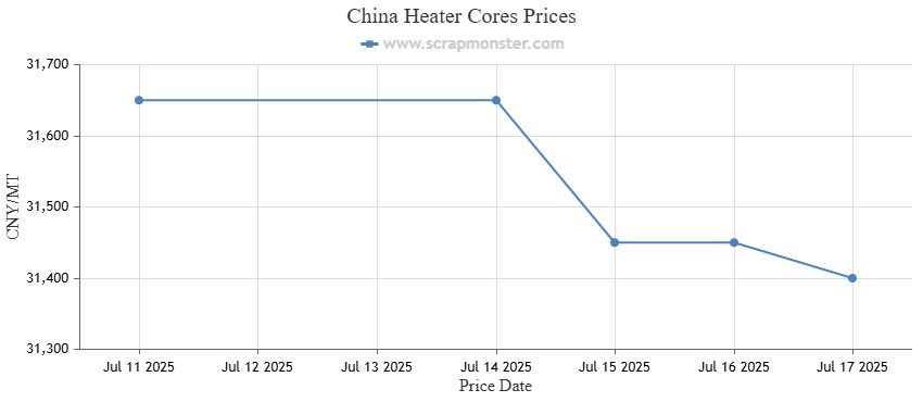 The weekly price chart of Heater Cores for the week ending July 17, 2025 is given below: