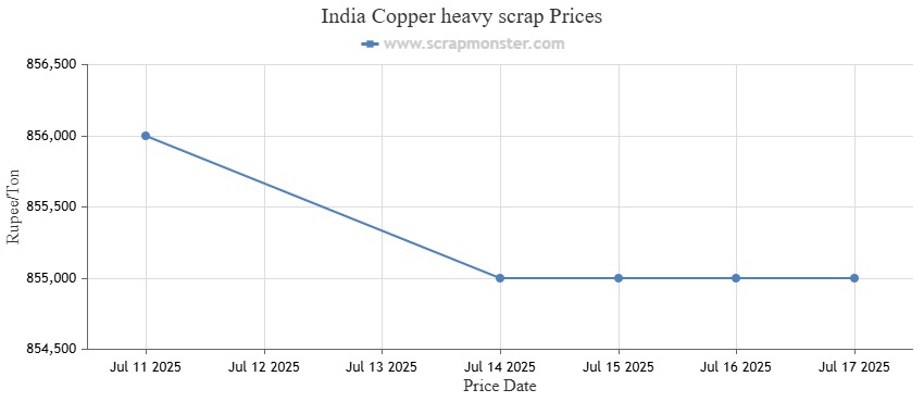 The copper heavy scrap, copper cable scrap and copper armeture scrap prices recorded decline, with the prices of all the above mentioned commodities recording dip by 0.12%. The weekly chart depicting the price movement in Copper heavy scrap is provided below: