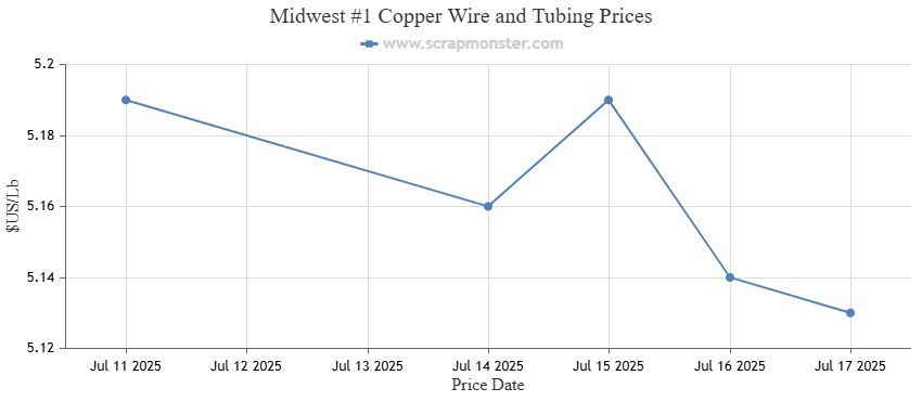 The weekly price movement for #1 Copper Wire and Tubing is shown in the below chart: