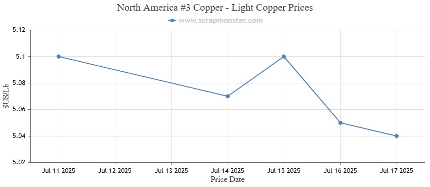 The weekly price movement for #3 Copper- Light Copper is shown in the below chart: