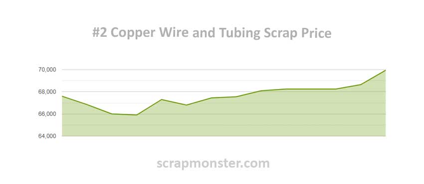 Three scrap categories saw significant price increases from the previous week: #2 Copper Wire and Tubing, #1 Copper Wire and Tubing, and #3 Copper-Light Copper.