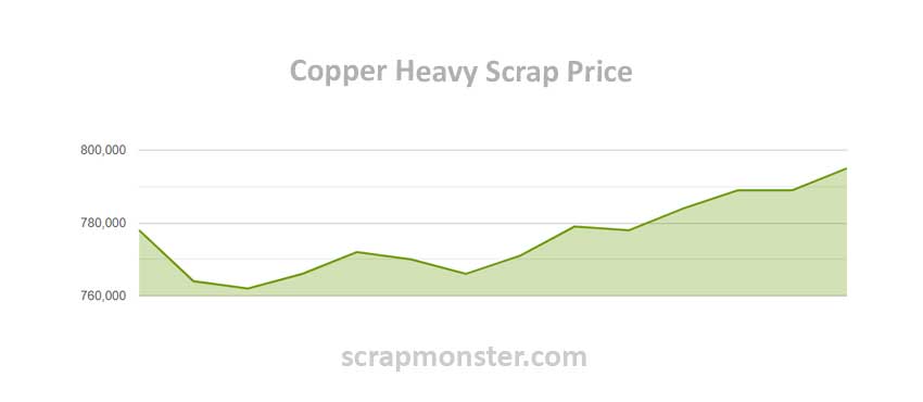 Copper sheet cutting scrap prices increased the most this week, jumping from INR 467,000 to INR 484,000 per ton. Copper armature and copper heavy scrap values increased somewhat on the Scrap Monster Index.