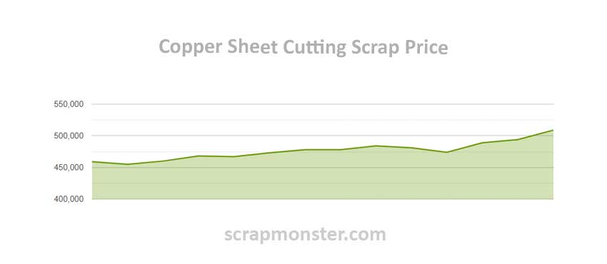 The copper sheet cutting scrap prices were up by INR 28,000 per ton over the previous week to close at INR 509,000 per ton on September 26, 2024 on the Scrap Monster Index. The weekly chart of the commodity is provided below: