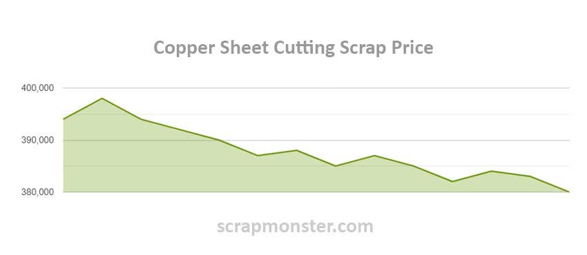 The copper sheet cutting scrap prices recorded largest dip, falling from INR 385,000 per Ton to INR 380,000 per Ton during the week. The weekly chart depicting the price movement in the commodity is provided below: