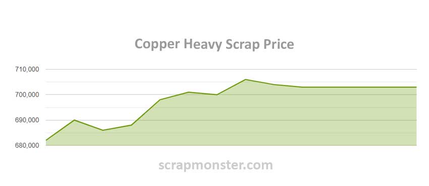 The prices of all copper scrap commodities such as #1 Copper Bare Bright, #1 Copper Wire and Tubing, #1 Insulated Copper Wire 85% Recovery, #2 Copper Wire and Tubing, Braziery Copper, Copper Dry Bright, Copper radiators and Copper Tubes were stable during the course of the week.