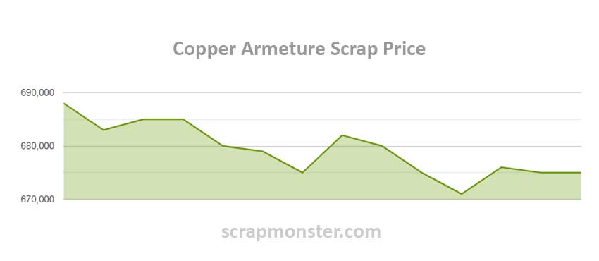 The Copper armeture scrap prices were unchanged at INR 675,000 per ton at the close of the week on 26th October, 2023 on the Scrap Monster Index. The weekly chart depicting the price movement in the commodity is provided below: