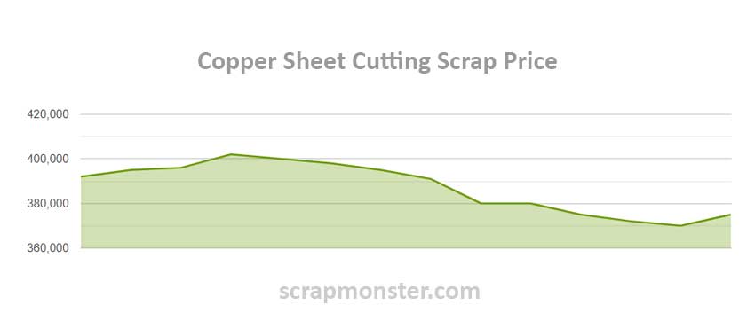 The copper sheet cutting scrap prices were down by INR 5,000 per ton over the previous week to close at INR 375,000 per ton on 28th September, 2023 on the Scrap Monster Index. The weekly chart of the commodity is provided below: