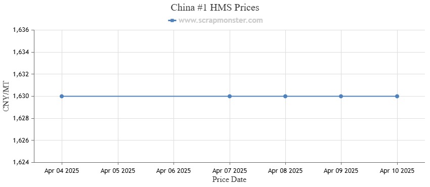 The Chinese steel scrap market remained flat during the week. The Cast Iron scrap prices witnessed no change from the prior week. Also, #1 HMS scrap prices held steady at CNY 1,630 per MT, as displayed in the below chart.