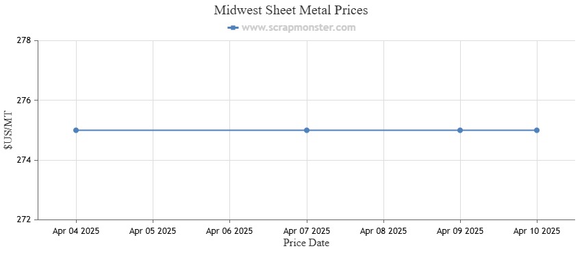 The Sheet Metal prices witnessed no change from previous week’s level of $275 per MT.