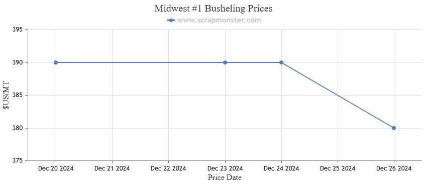 In contrast, #1 Bundle, #1 Busheling, and Shredded Auto Scrap prices declined on the Index. #1 Bundle prices were down by 2.7%, whereas Shredded Auto Scrap recorded decline by 2.67%. Also, #1 Busheling prices witnessed a reduction of $10 per MT, falling from $390 per MT at the start of the week to $380 per MT as of December 26, 2024.