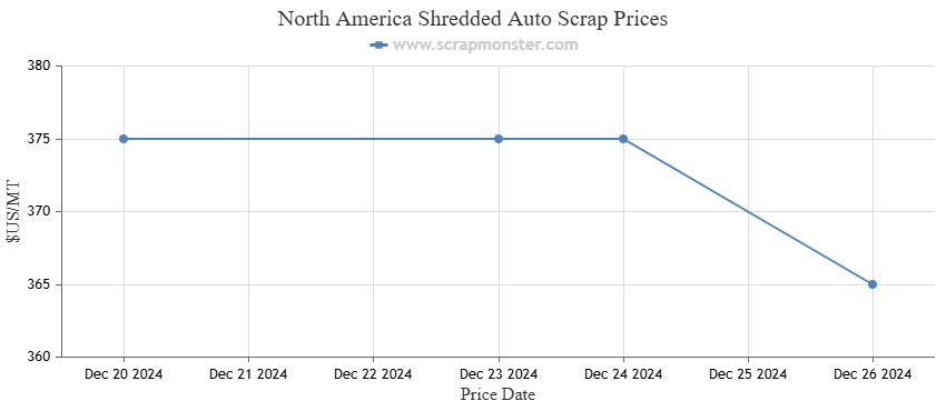 Shredded Auto Scrap prices were down by 2.67%. The commodity prices ended the week at $365 per MT on the Index.