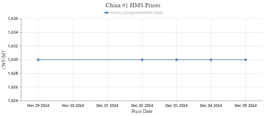 The Chinese steel scrap market remained flat during the week. The prices of Cast Iron Scrap witnessed no change from the prior week. #1 HMS prices held steady, as shown in the below chart.