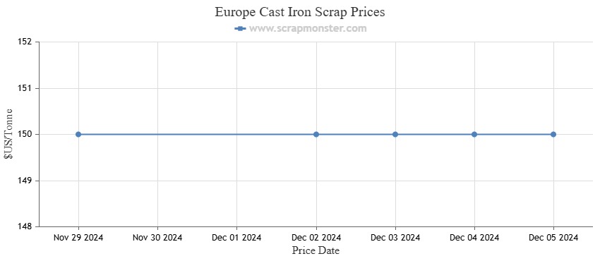 The price variation in Cast Iron Scrap over the one-week period from November 29 to December 5, 2024 is provided in the below chart.