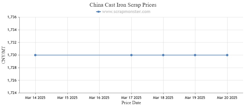 The Chinese steel scrap market remained flat during the week. The #1 HMS prices witnessed no change from the prior week. Also, Cast Iron scrap prices held steady at CNY 1,730 per MT, as displayed in the below chart.