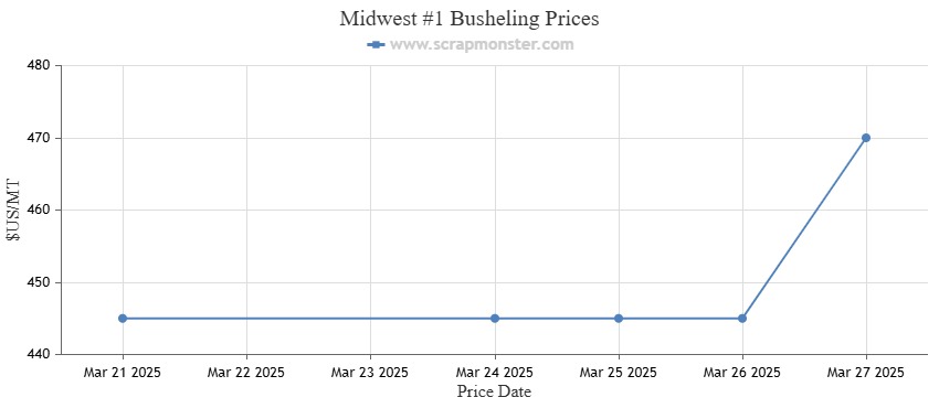 The below chart depicts the weekly price movement in #1 Busheling scrap: