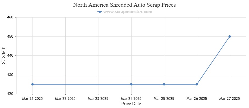 The chart below provides weekly price trends in Shredded Auto Scrap in the North American region: