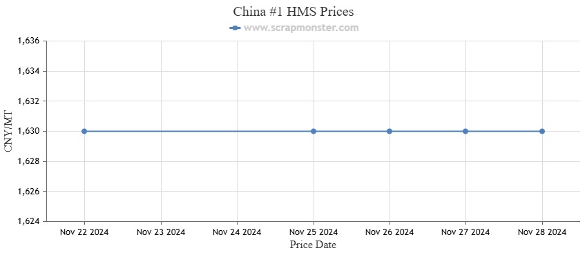 The Chinese steel scrap market remained flat during the week. The prices of Cast Iron scrap witnessed no change from the prior week. #1 HMS prices held steady at CNY 1,630 per MT, as shown in the below chart.